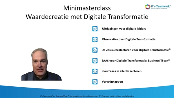 Nu ik meer dan 20 jaar leiding heb mogen geven aan digitale transformaties in allerlei sectoren in binnen- en buitenland, zie ik de patronen: op welke manier wordt WEL waarde gecreëerd met digitale transformatie? In de gratis online Minimasterclass vertel ik je er graag meer over!